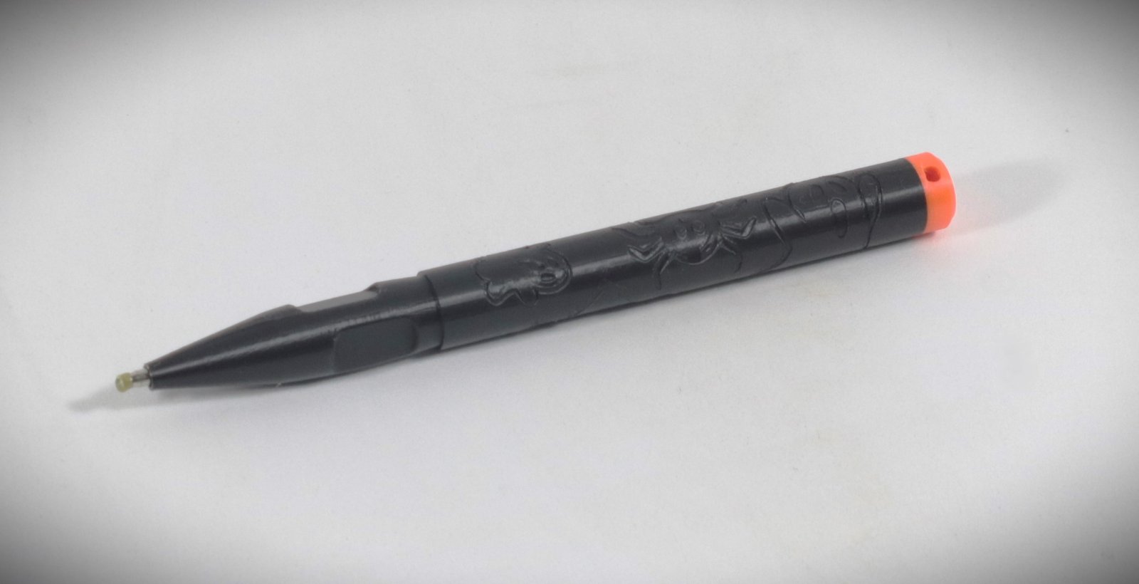 - Corpo della penna con intarsi decorativi: fantasmini, ragni e pipistrelli
