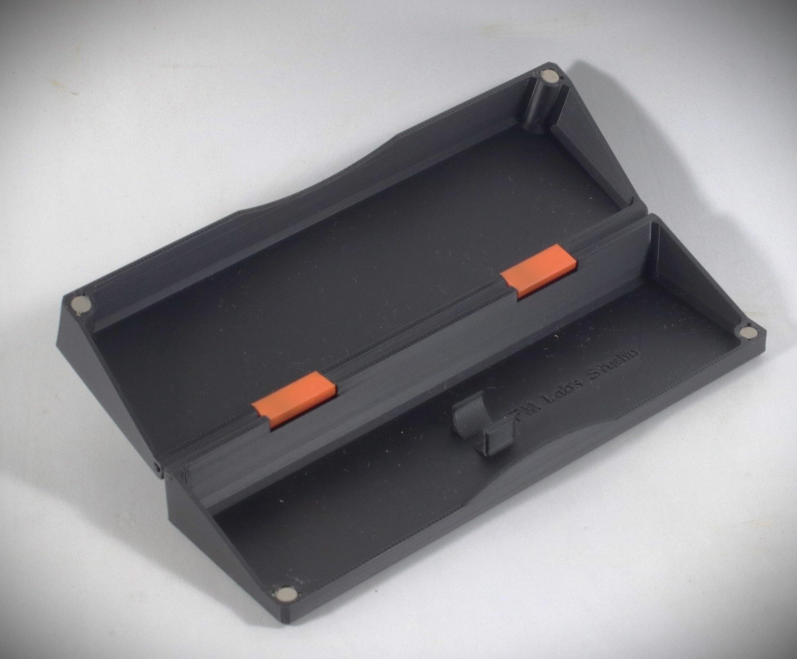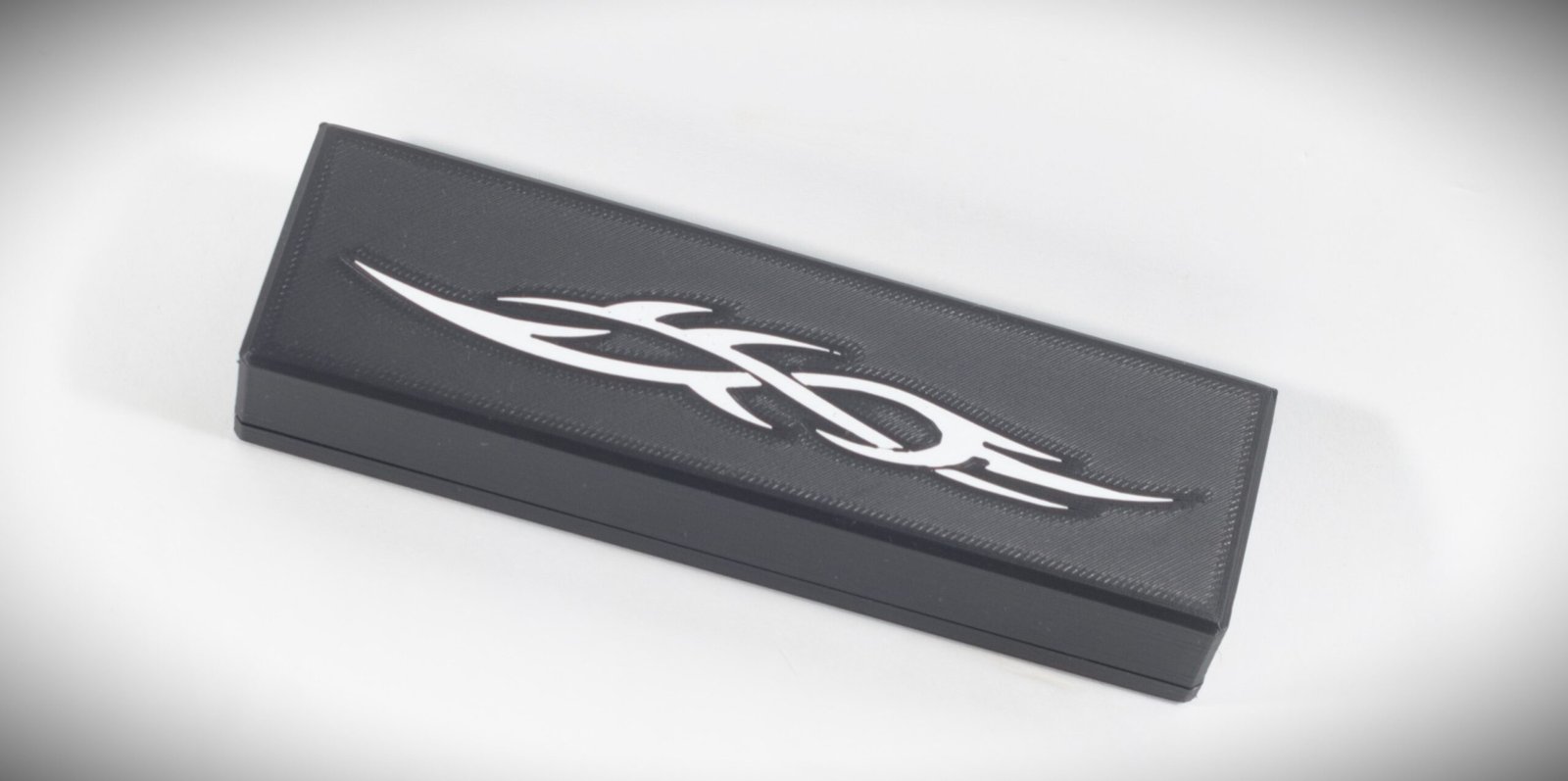 La Custodia Esclusiva: Stile e Sicurezza con chiusura a magneti. Il coperchio è impreziosito da un contrasto cromatico di grande impatto: un’enigmatica Runa Fantasy in bianco su fondo nero.