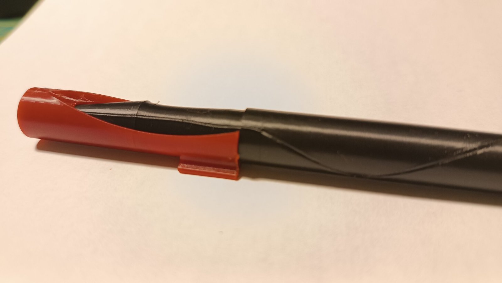 Il tappo della Pivot Pen si può inserire diagonalmente lungo l’apertura e si blocca in posizione con una rotazione fluida attorno al perno della punta.
